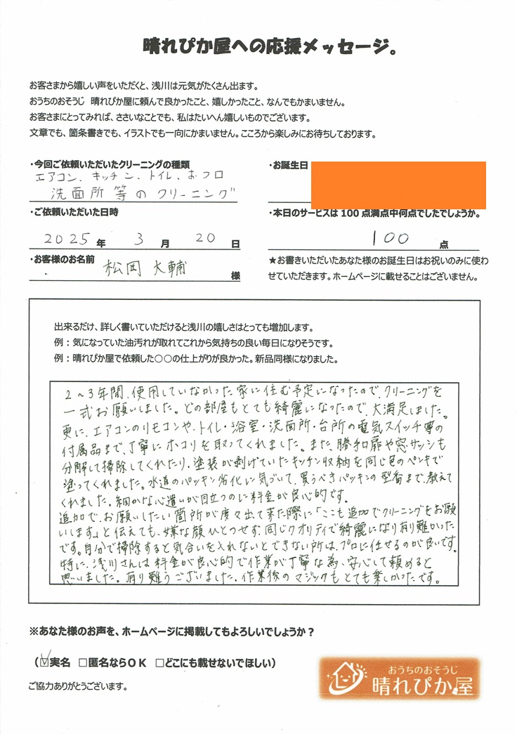 お客様の声 松岡様 ハウスクリーニング